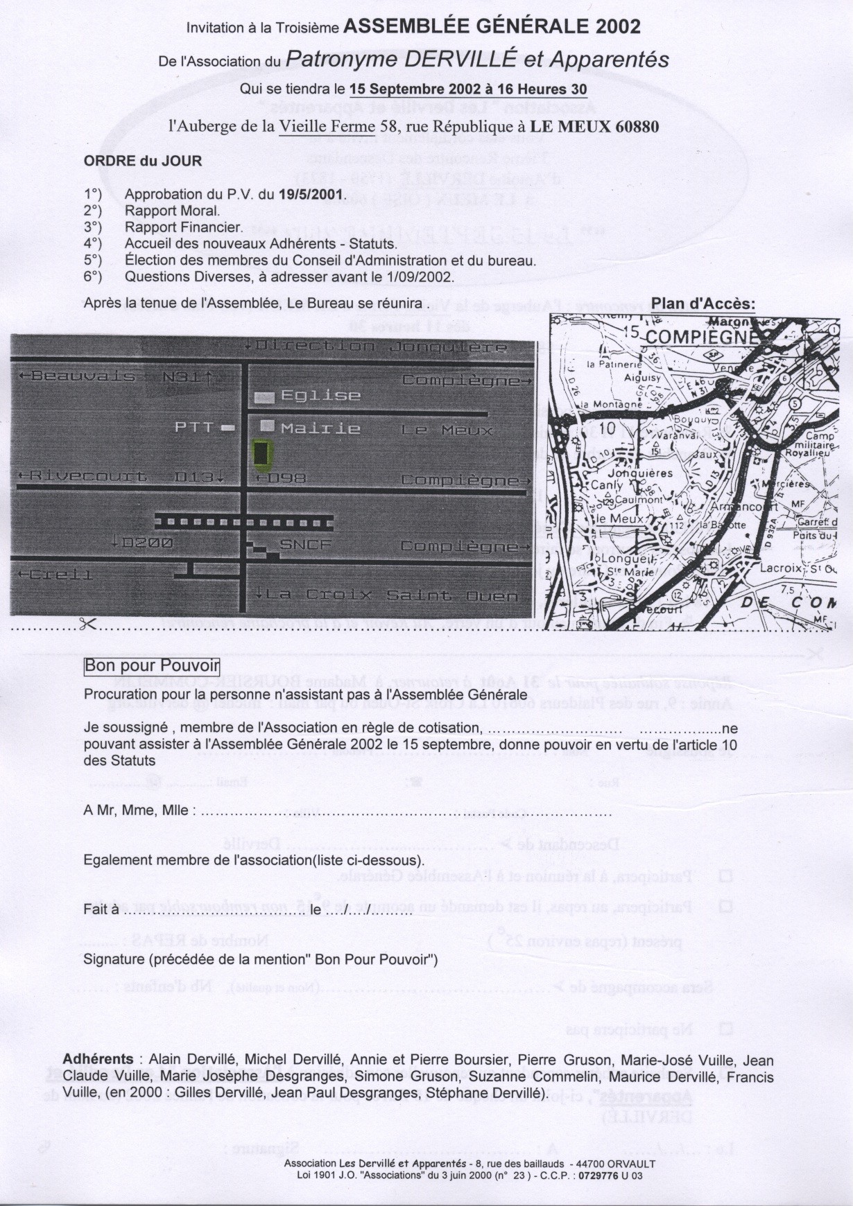 Convocation à L'Assemblée Générale du 15/09/2002 et compte rendu