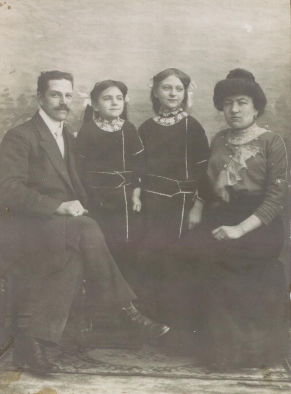 René Dervillé sa Femme, Blanche Hardivillers (1877-1947), ses deux Filles, Yvonne(1901-1994) et Odette (1906-1990).     Henri Fernand (1881-1942) fils de Charles est donc cousin germain de René