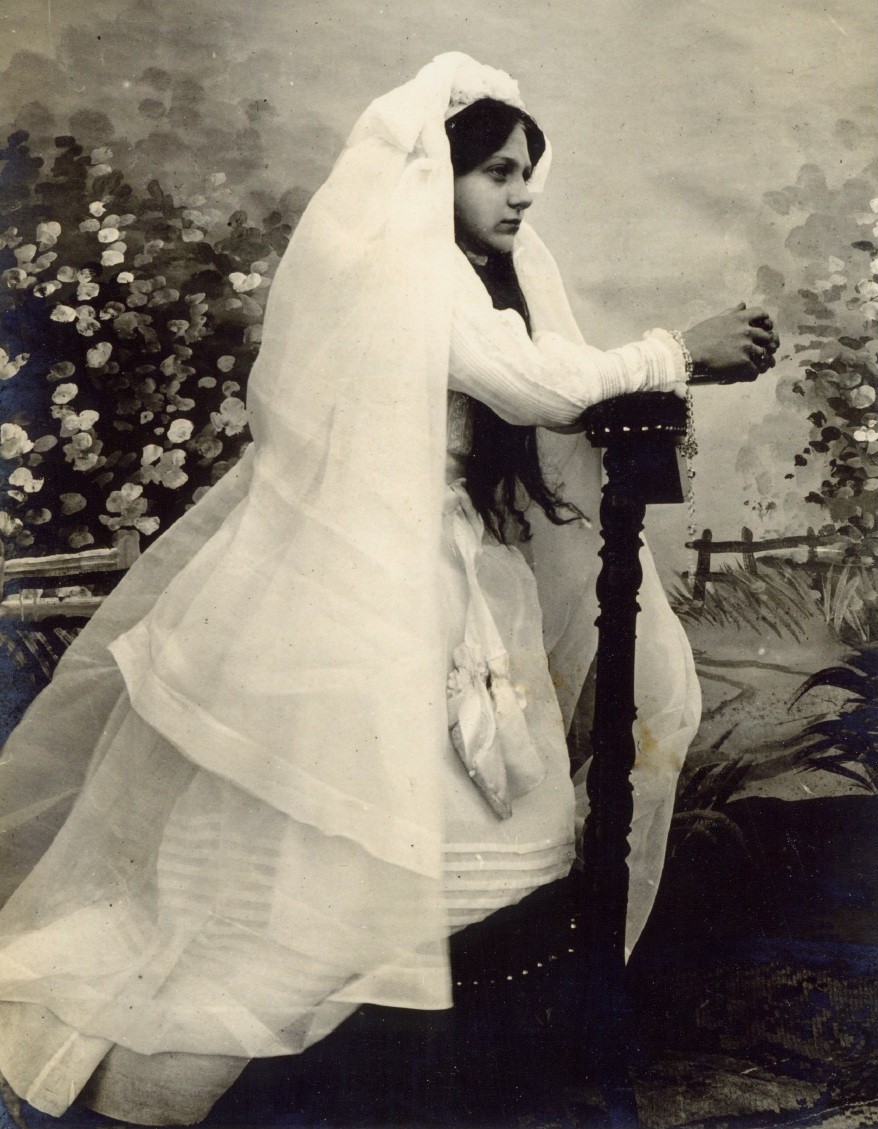 Yvonne Dervillé (18/1/1901 - 29/9/1994), à 11 ans le 16 juin 1912 jour de sa communion, future Madame Alfred François Boumier (17/12/1886-1/9/1961) de qui elle aura deux fils dont Alain Boumier.