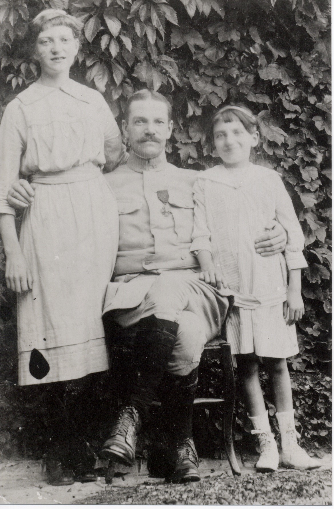 René Dervillé en Uniforme d'Officier Militaire pendant la première guerre mondiale et ses deux filles Yvonne et Odette     la femme d'Henri Dervillé, Laure Cattiaux (1886-1939).