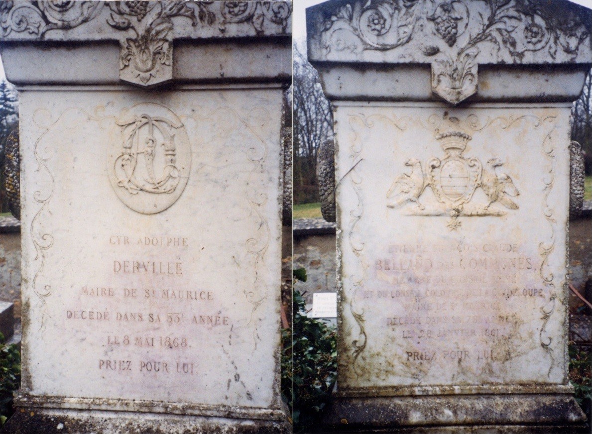 inscriptions, épitaphe, concernant le Père de Stéphane Dervillé et son beau-Père.