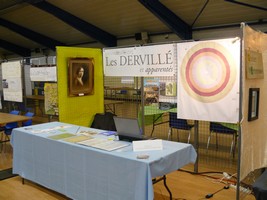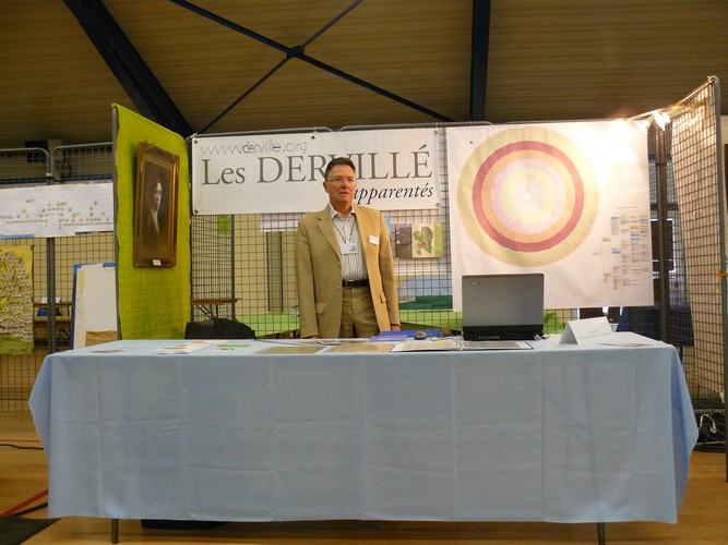 Position du stand "Les Dervillé et Apparentés" Michel Dervillé dans son stand, à Gauche tableau de Laure Alcidie Cattiaux, sa grand mère paternelle Vue 2 Vue 3