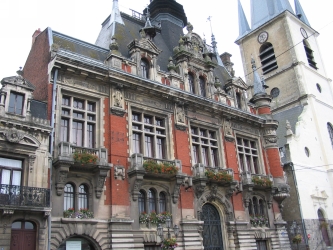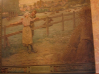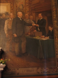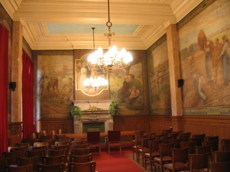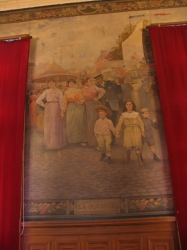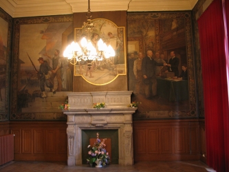 En 1906-1907, Henry Eugène DELACROIX livre à sa ville natale 14 toiles ( 11 vues reprentées ici) que l'on peut grouper, d'après leurs sujets, en 4 séries dont chacunes ornent l'un des quatre côtés de la salle des mariages.