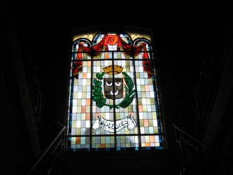 Vitrail dans l'escalier Emblème de la ville de SOLESMES |